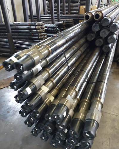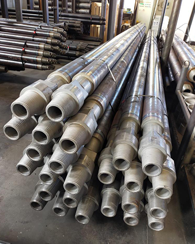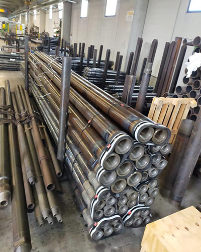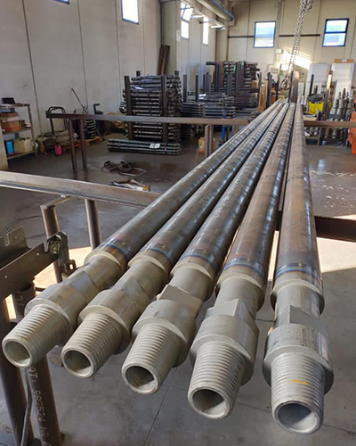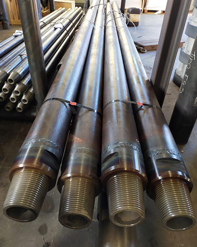 Friction welded dual wall drill pipes for drilling reverse circulation. Pipes up to outer diameter 140mm are friction welded. Larger pipes are welded conventional. We can supply most threads on the market.
